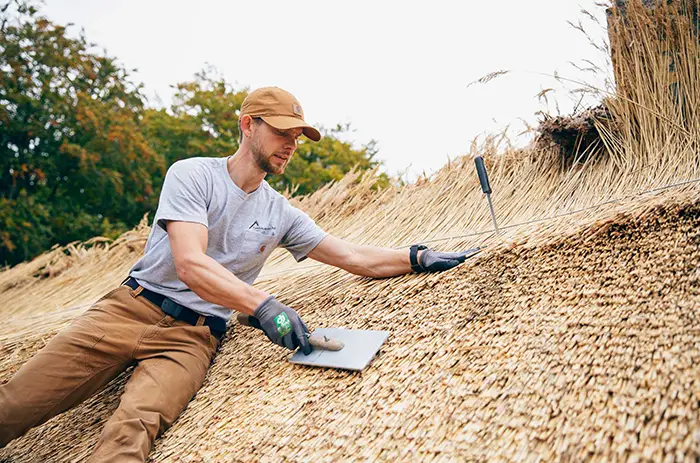 Ofte opdages skader i forbindelse med slidt rygning af stråtag, hvor vi både kan reparere og rådgive om, hvornår en egentlig rygning er nødvendig.